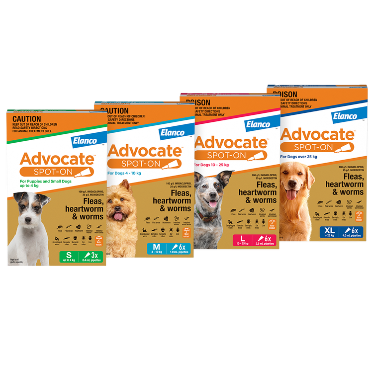 Advocate Spot-On provides fast relief from fleas, prevents deadly heartworm and helps protect your dog and your family from most intestinal worms