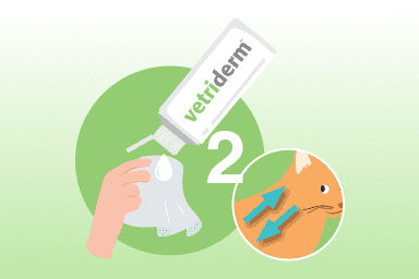 Moisten a microfiber cloth or washcloth with Vetriderm and gently rub the pet’s coat. Rub in the direction of hair growth, then in the opposite direction.